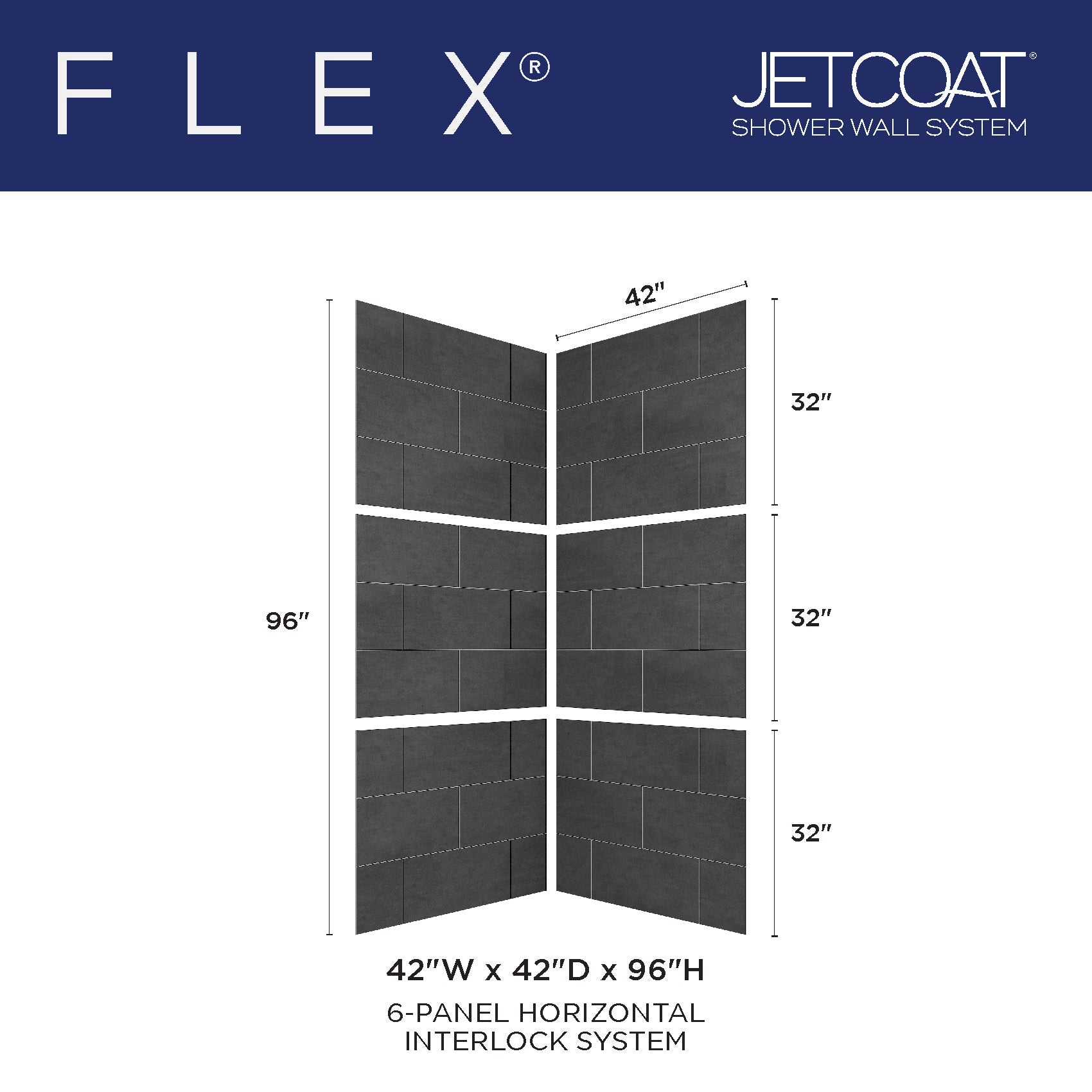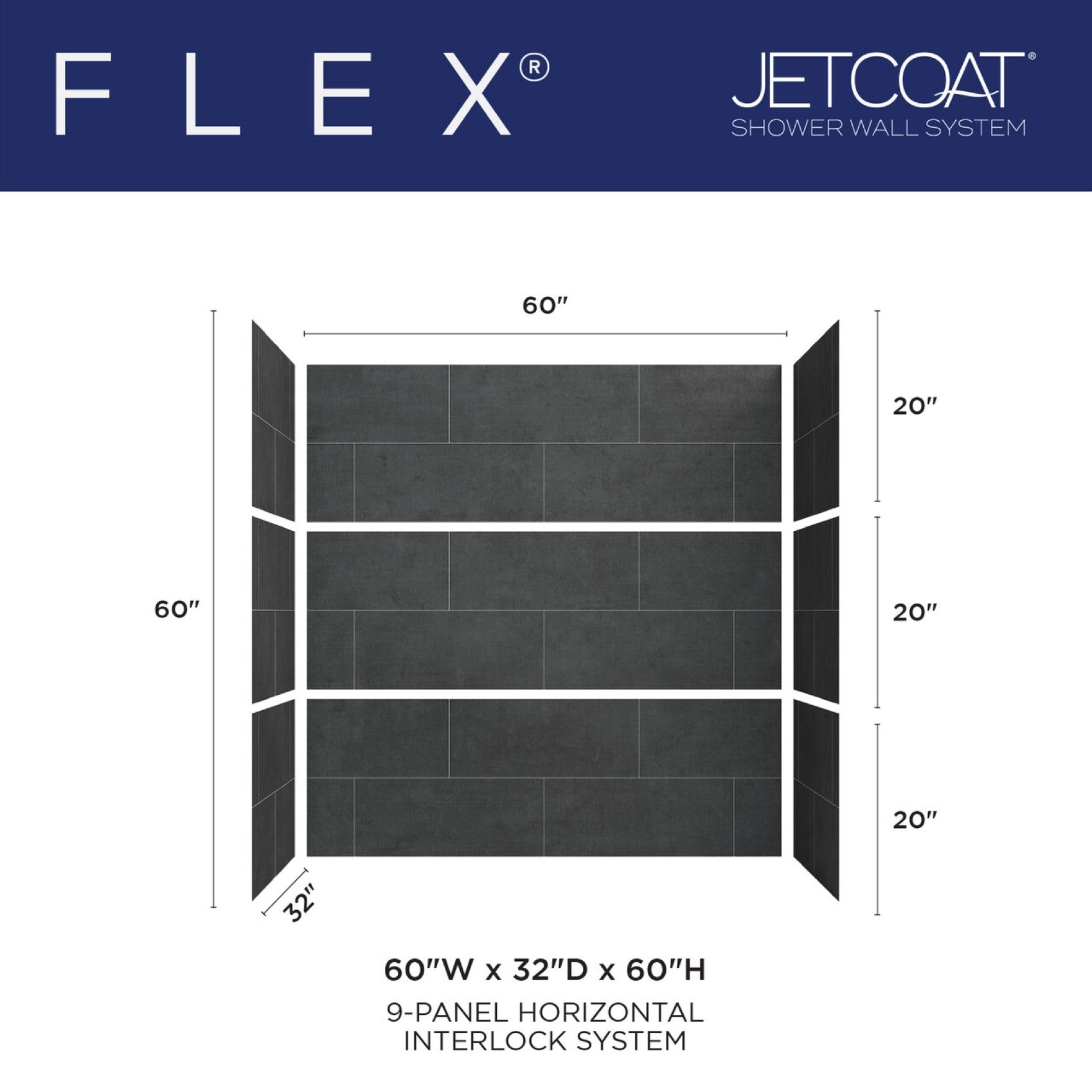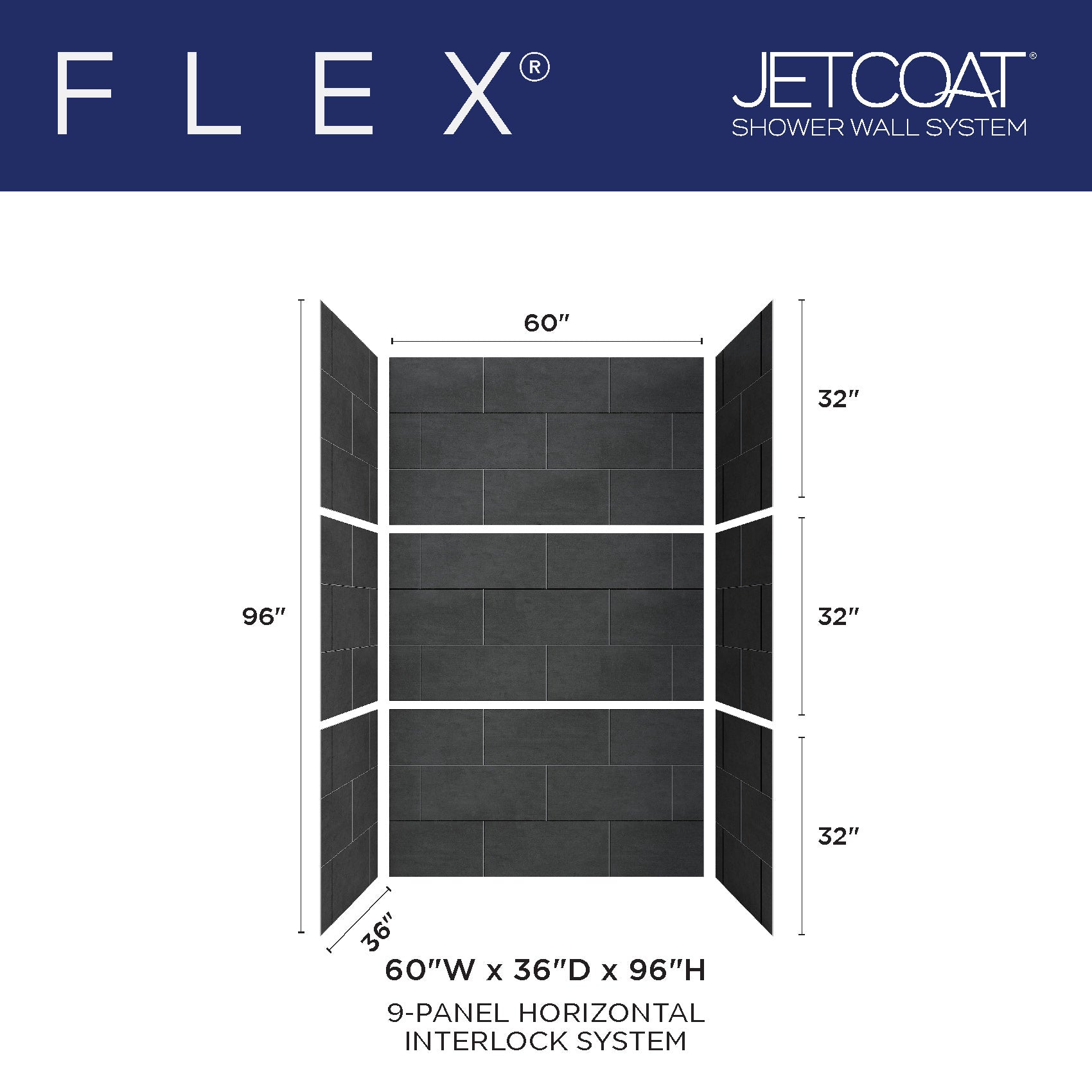 CRAFT + MAIN® JETCOAT® FLEX®, featuring a contemporary tile design patterns with Real-Feel etched grouted tiles, eliminates the mess and time-consuming installation process of real tile. Horizontal panels with Interlocking Technology create easy, waterproof installation, while the horizontal interlocking grout lines conveniently hide the panel-lock seams. FLEX® panels are lightweight and easily cut for a custom fit, with a beveled outside edge providing a sleek, finished look. Each waterproof panel is layered with a top clear coat that has multiple protective UV layers for wear and stain resistance. FLEX® Shower Wall Systems are available in Neo-Angle, Tub, and Shower layouts. It’s not just the upscale feel the shower system promises; it’s the longevity, durability, and ease of upkeep for years to come. For a more striking design, our accent panels sold separately, can be added to create an intriguing and sophisticated shower aesthetic in an otherwise simple bathroom.