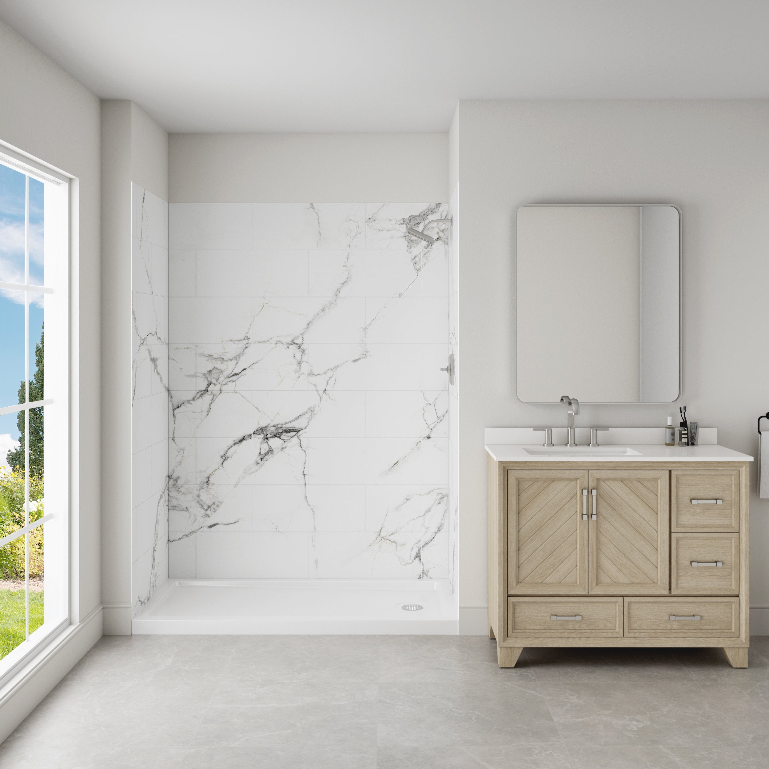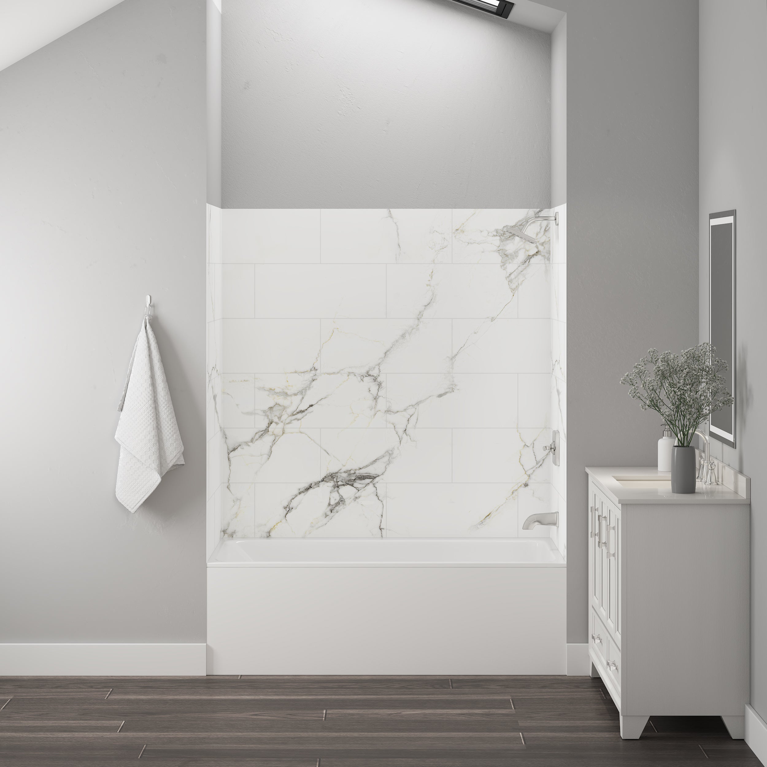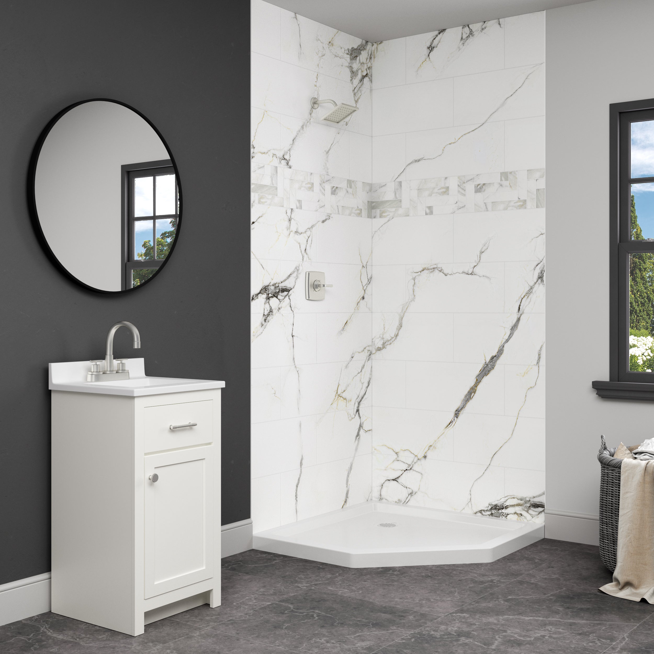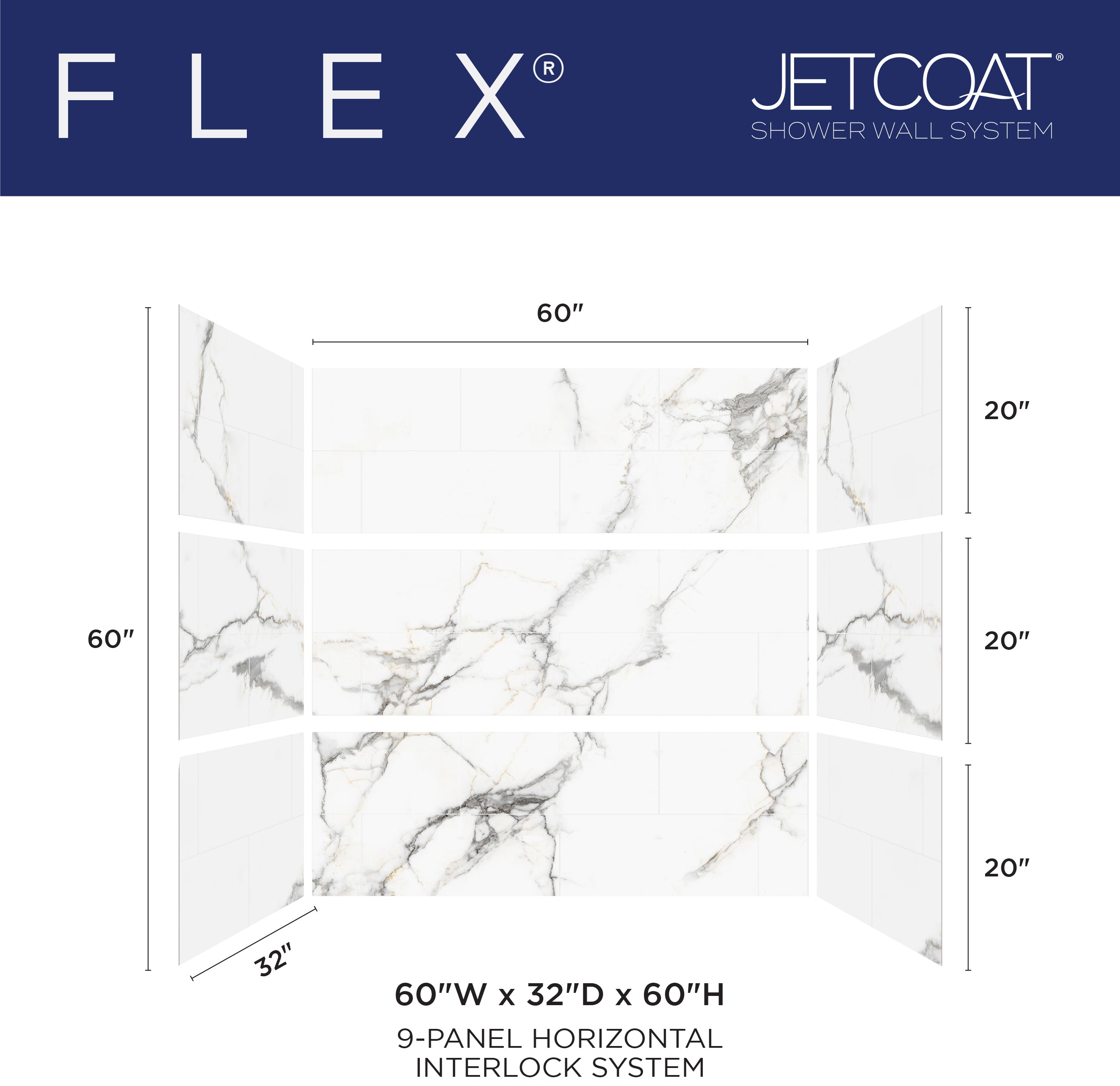 CRAFT + MAIN® JETCOAT® FLEX®, featuring a contemporary tile design patterns with Real-Feel etched grouted tiles, eliminates the mess and time-consuming installation process of real tile. Horizontal panels with Interlocking Technology create easy, waterproof installation, while the horizontal interlocking grout lines conveniently hide the panel-lock seams. FLEX® panels are lightweight and easily cut for a custom fit, with a beveled outside edge providing a sleek, finished look. Each waterproof panel is layered with a top clear coat that has multiple protective UV layers for wear and stain resistance. FLEX® Shower Wall Systems are available in Neo-Angle, Tub, and Shower layouts. It’s not just the upscale feel the shower system promises; it’s the longevity, durability, and ease of upkeep for years to come. For a more striking design, our accent panels sold separately, can be added to create an intriguing and sophisticated shower aesthetic in an otherwise simple bathroom.