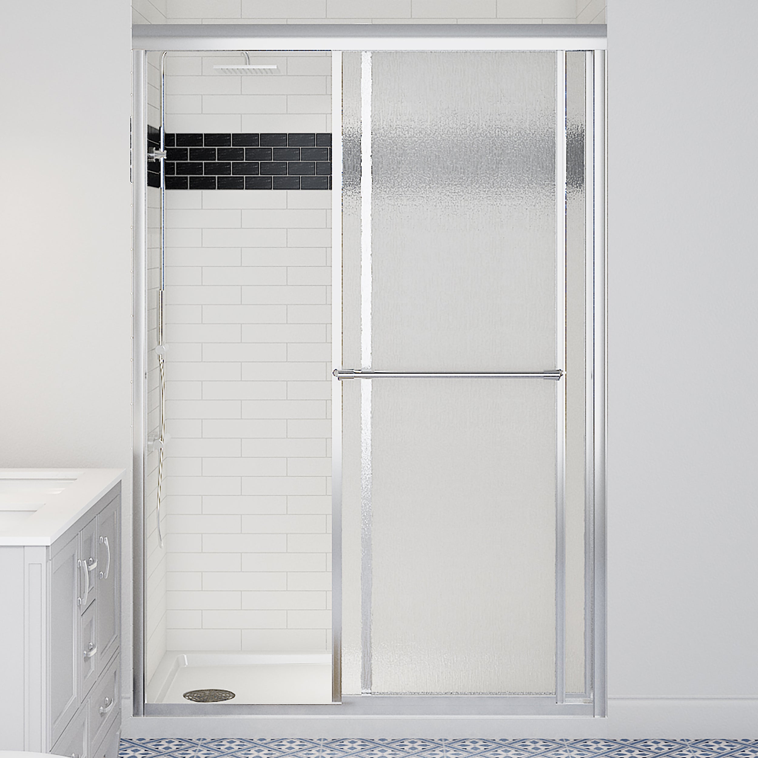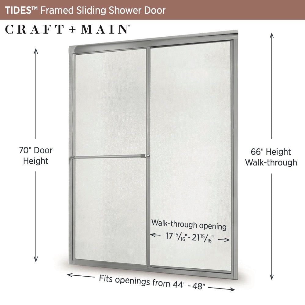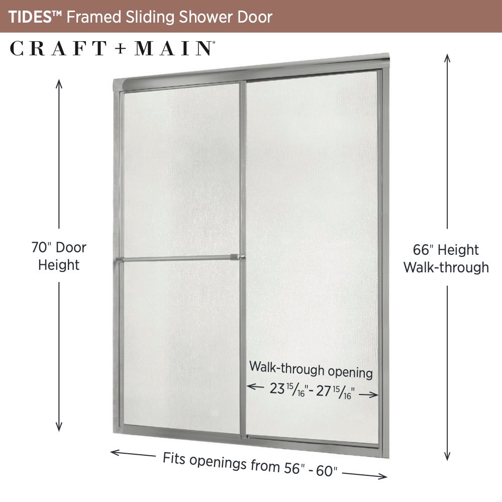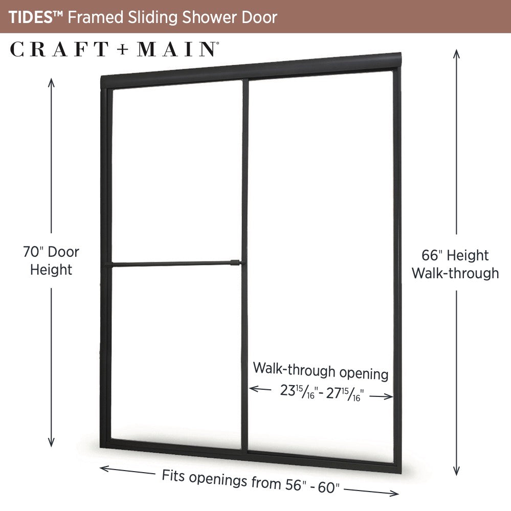 Refresh your shower with The CRAFT + MAIN Tides Collection framed shower door. With tempered safety glass surrounded by an elegant frame, CRAFT + MAIN Tides doors will complement your bathroom beautifully. The CRAFT + MAIN Tides Collection features budget-friendly classic framed sliding shower doors that will bring fresh appeal to your bathroom. In addition to their style, CRAFT + MAIN Tides doors are designed to be easy to install.